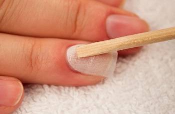 Все эти несложные инструменты достаточно легко приобрести в косметическом магазине. Для работы необходимо предварительно удалить с ногтя лак и устранить с помощью бафа все шероховатости и неровности, образовавшиеся в месте скола. Когда поверхность подготовлена, необходимо ее обезжирить антисептиком и подготовить кусочек ткани, который на два – четыре миллиметра будет закрывать трещину.