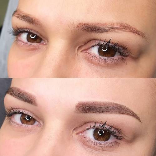 Если собственные брови вполне устраивают, но хочется сделать их чуть ярче и выразительнее, можно при помощи татуажа создать для них фон на коже. Татуаж позволяет сделать ровным и четким контур бровной линии, замаскировать имеющиеся шрамы. После него брови будут привлекать к себе больше внимания, чем после ручной прорисовки волосков. Однако татуаж является более травматичным и требует длительной реабилитации. К тому же ошибка мастера при его выполнении может обойтись слишком дорого и надолго испортить внешний вид бровей.