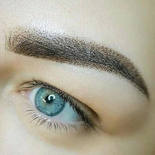 Пудровое напыление бровей дает такой эффект, который вы получили бы, подкрасив брови мягким карандашом или тенями. При нем отсутствуют четкие наведенные контуры, но при этом форма и визуальный объем хорошо выражены.