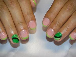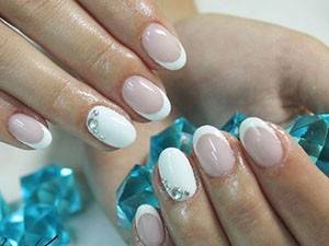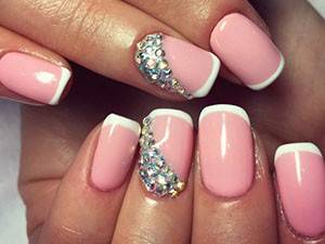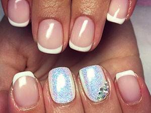 - Бессмертный френч. Этот стиль смотрится элегантно не только с белой окантовкой, но и с другими цветами — от черного до неонового розового. К праздничным событиям можно сделать акцентную полоску в блестках. Френч выглядит аккуратно на любой форме и длине ногтя, и уместен практически для любой сферы деятельности.