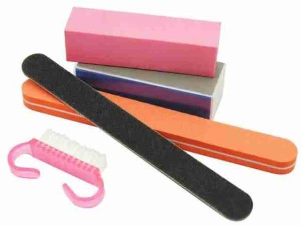 - Поверхность ногтевой пластины шлифуют бафом (это необходимо для ее выравнивания и лучшей сцепки с покрытием).