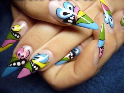 - Полет для фантазии мастера. Ногти акриловые – это идеальное поле для лепки и на них можно выполнить любой дизайн.