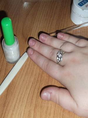 Ноготь не должен обрезаться слишком коротко, в противном случае сцепление рабочего материала и поверхности ногтя будет недостаточно прочным и по прошествии времени часть наращенного ногтя может просто отвалиться.