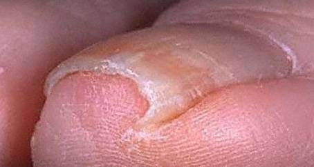 - утолщение, укорочение и деформация ногтя, огрубение кожи (при хроническом течении).