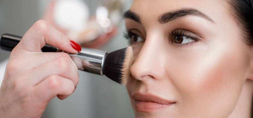 - рассыпчатый, один из сложных в использовании по той причине, что его легко переборщить. Чаще всего используют как последний штрих в макияже, нанося большой кистью;