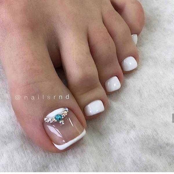 Всегда модно, красиво и безупречно смотрится белый педикюр в любых вариантах дизайна. Белый педикюр со стразами, белый лунный педикюр, белый педикюр с рисунком и в сочетании с любыми другими оттенками всегда будет выглядеть непревзойденно.