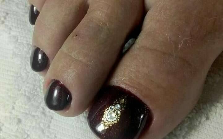 По желанию клиентки по завершению комбинированного педикюра мастер покрывает ноготки цветным декоративным покрытием и создаёт выбранный вами дизайн.