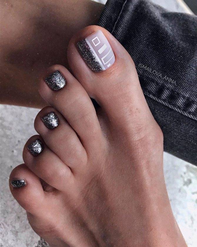 Если вам не хочется делать однотонный педикюр белого цвета, то можно смело добавить: