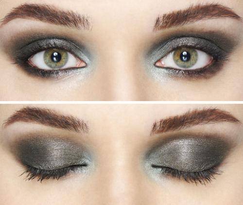 Темноволосым, в отличие от светловолосых, легче подобрать оттенки косметических средств, поскольку с темными волосами гармонируют даже самые яркие цветовые гаммы. Согласно рекомендациям косметологов, макияж для зеленых глаз должен подчеркнуть глубину оттенка радужки, с чем справятся тени зеленоватых оттенков.
