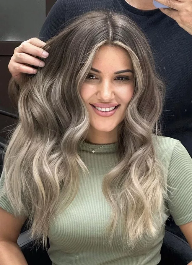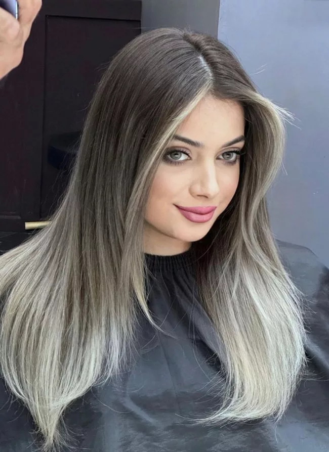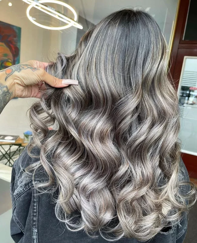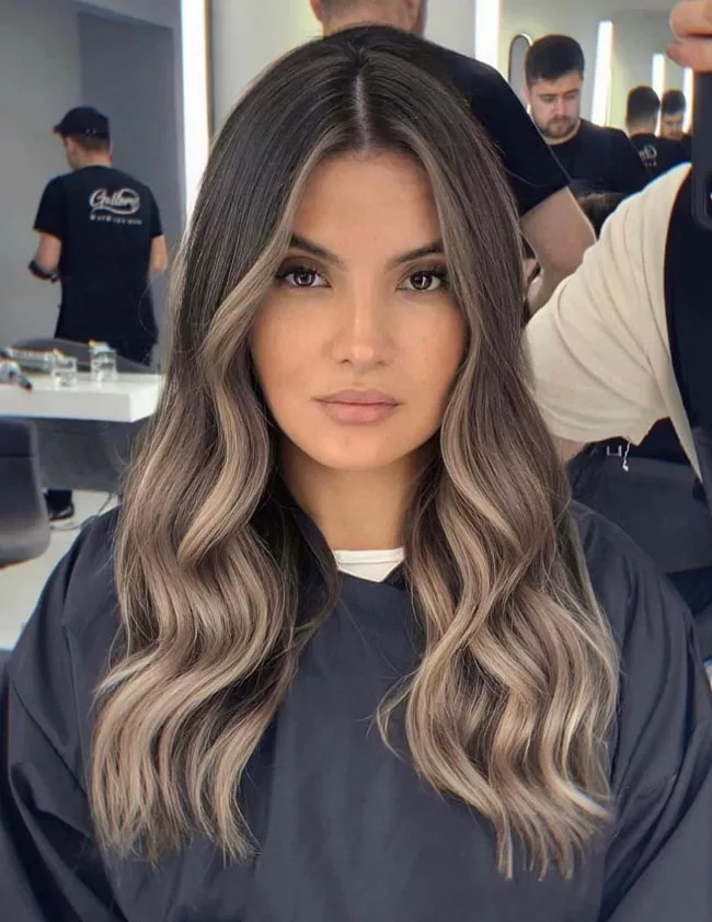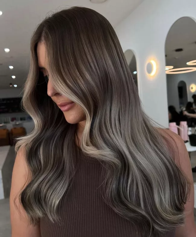 Пепельное мелирование на темных волосах — это стильный выбор и самый популярный. Пепел идеально подходит для создания контраста с темным основным цветом. Холодный оттенок всегда выглядит изысканно и модно.
