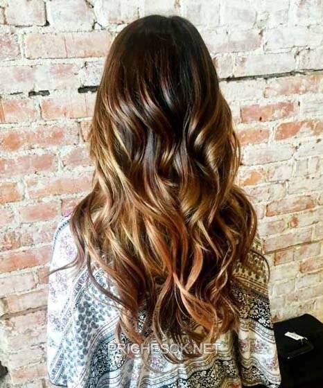 Это теплый, осенний цвет с тонами персика и корицы с богатой коричневой основой. Этот стиль будет хорошо работать со всеми длинами волос. Короткие волосы с затененными корнями придадут им глубину, добавят текстуру и иллюзию более густых волос. Волосы средней длинны подходят по той же причине, и вы можете носить их в гладком каре или же сделать волны для дополнительной текстуры. Также он будет идеально смотреться на длинных пышных волосах.