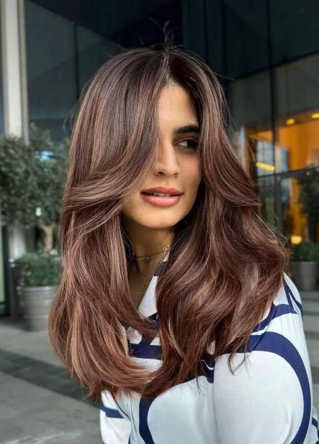 Зачем выбирать между светлым и коричневым, если можно получить и то, и другое? Эти оттенки лучше всего смотрятся на брюнетках.