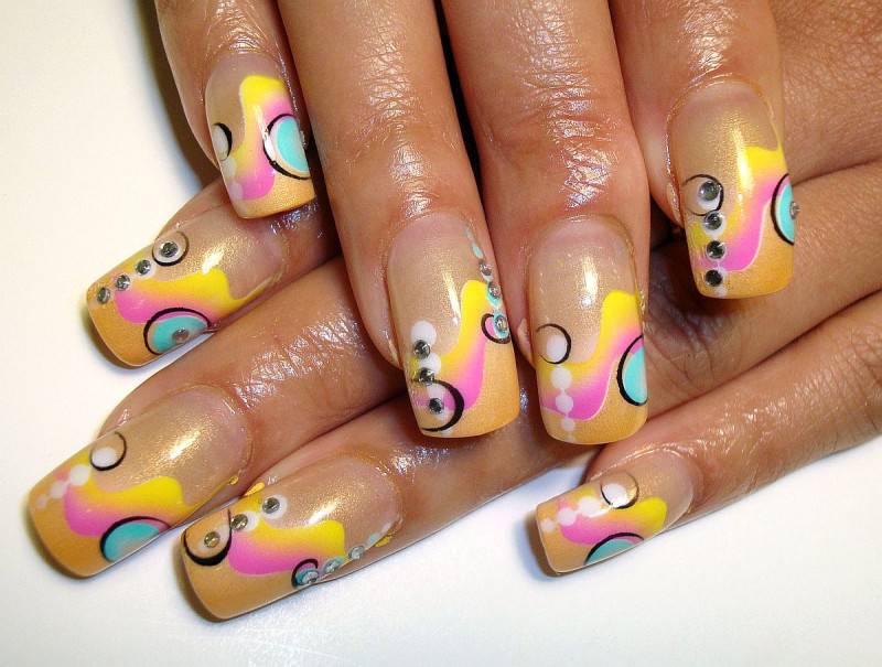 Цветной французский маникюр предоставляет огромный простор для творчества. Возможны такие варианты его оформления: