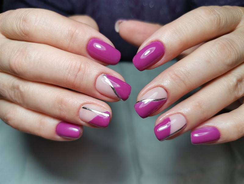 Абстракция и геометрия не выйдут из моды никогда. Это неудивительно, т. к. необычные фигурки придают любому образу WOW-эффект. С их помощью можно создать даже какой-то узор. Главный плюс такого дизайна — универсальность. С ним можно отправляться как на деловую встречу, так и на вечернюю прогулку. Форма и длина ногтей не имеют значения. Трапеция, пятиугольник или замысловатые ломаные линии будут оригинально смотреться всегда.