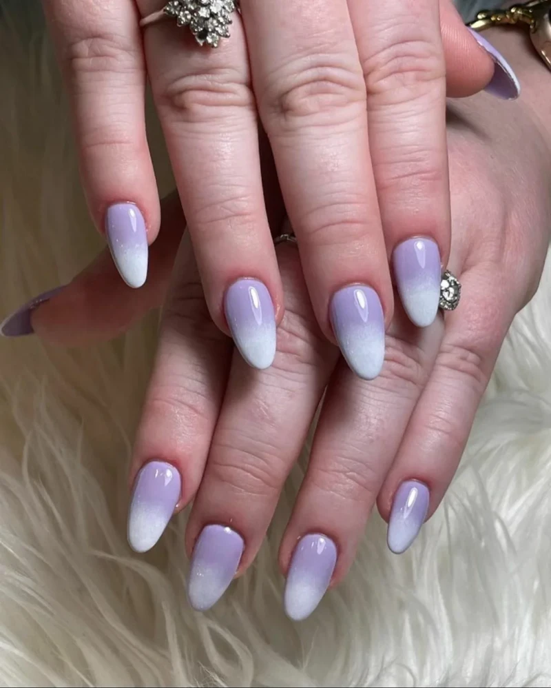 Его еще называют модным термином омбре (амбре). В таком виде французского маникюра полумесяц на кончике ногтя не имеет четкой границы и выполняется двумя близкими по тону оттенками лаков. Для создания эффекта плавного перехода одного цвета в другой используют спонж или аппликатор для теней.