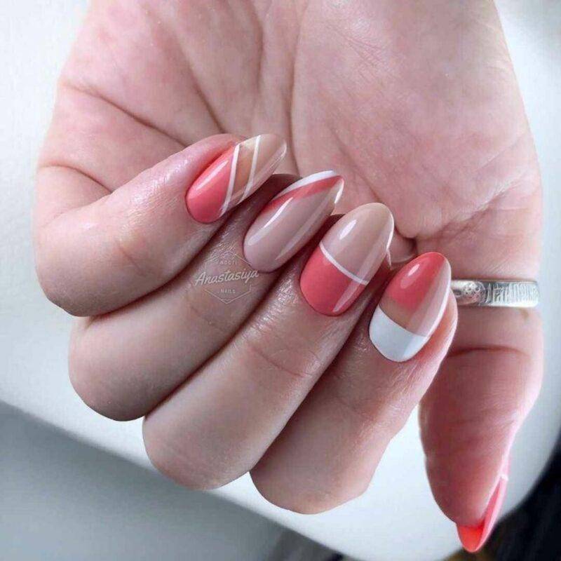 Абстракция и геометрия не выйдут из моды никогда. Это неудивительно, т. к. необычные фигурки придают любому образу WOW-эффект. С их помощью можно создать даже какой-то узор. Главный плюс такого дизайна — универсальность. С ним можно отправляться как на деловую встречу, так и на вечернюю прогулку. Форма и длина ногтей не имеют значения. Трапеция, пятиугольник или замысловатые ломаные линии будут оригинально смотреться всегда.