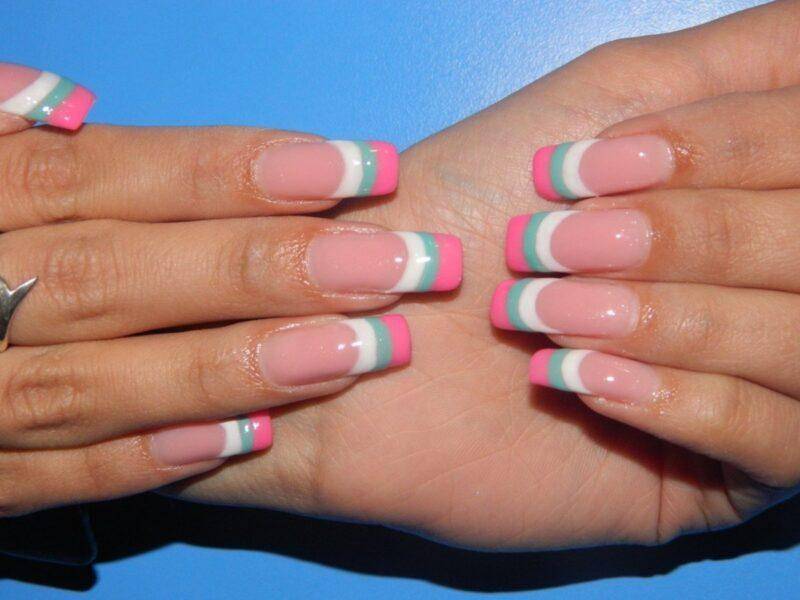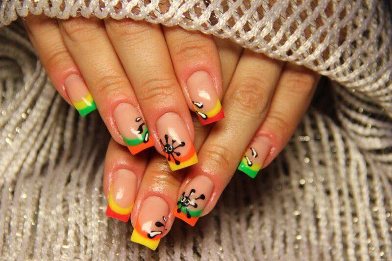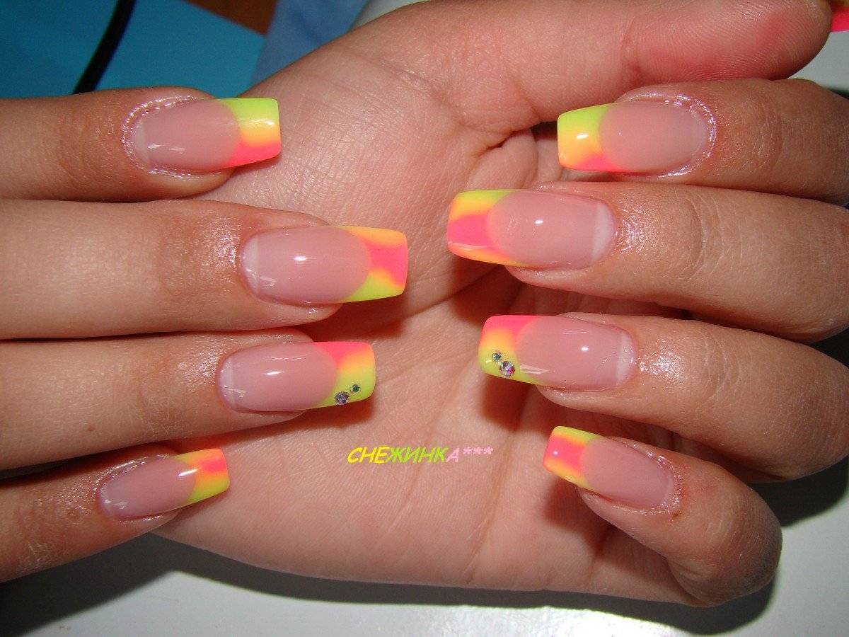 Цветной французский маникюр предоставляет огромный простор для творчества. Возможны такие варианты его оформления: