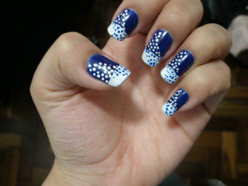 Самые популярные варианты украшения для комбинированного дизайна — нарисованные полоски, точки, а также стразы.