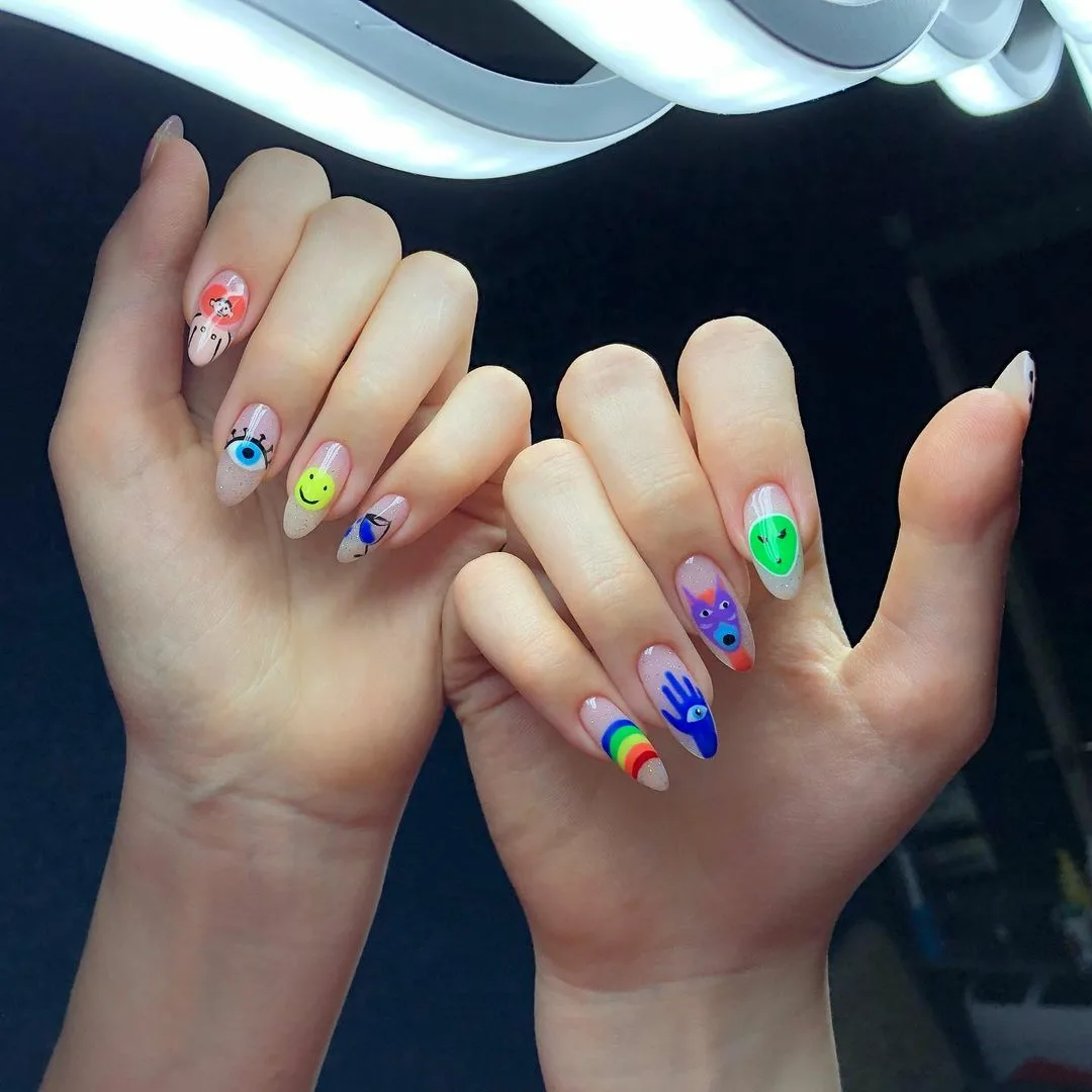 Если вам захотелось добавить в свою жизнь позитива, то обратите внимание на рисунки с мультяшными героями. Они всегда поднимают настроение и выглядят нестандартно на ногтях