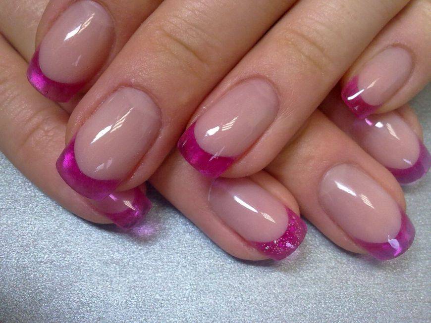 Для решительных и экстравагантных особ мода предлагает использовать для френча лаки ярких неоновых оттенков. А тем, кто не готов к экспериментам, можно выбрать лиловое, алое, бирюзовое покрытие или же традиционный белый френч в обрамлении розовых страз.