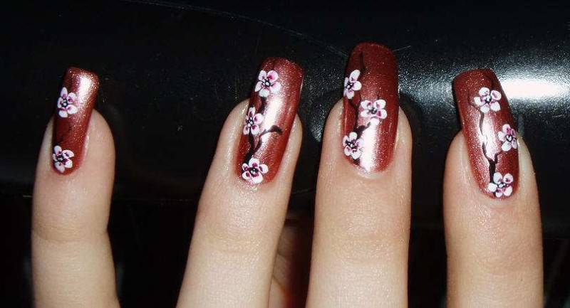 Флористика нейл – арта не стоит на месте, шоколадный или кофейный гель – лак нашел свое место в изумительном коричневом маникюре с цветами