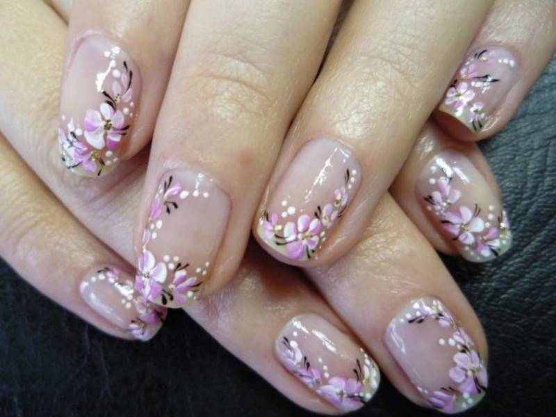 Маникюр с нежными цветами: актуальные оттенки и декор