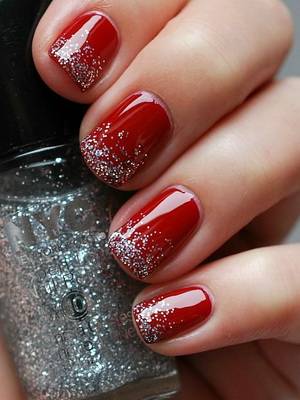 На фото ниже вы можете увидеть несколько стилей красного новогоднего маникюра с блестками для встречи 2021 года: