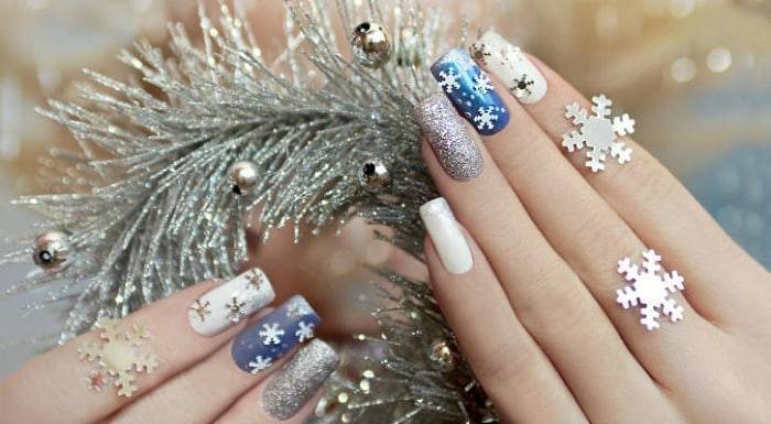 Можно просто найти картинки в магазине и создать новогодний маникюр. Декор как правило включает новогодние рисунки на ногтях в виде картинок.
