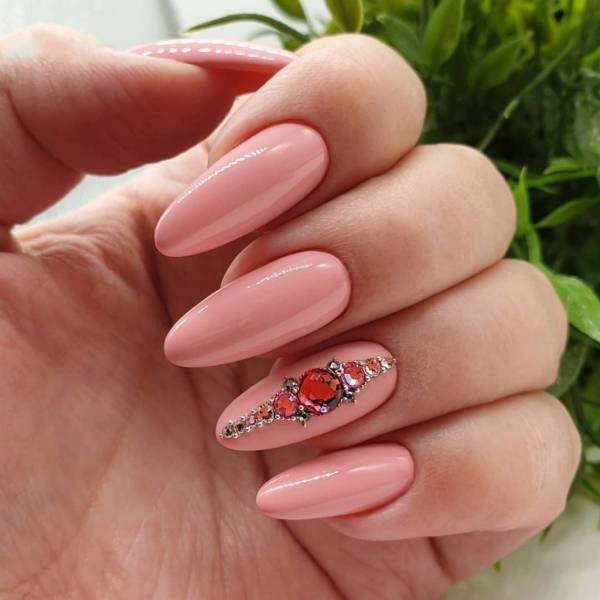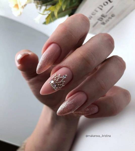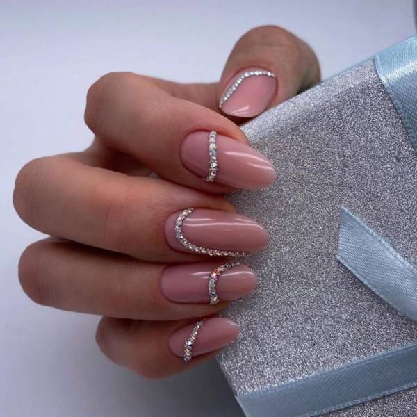 Обнаженные нюдовые цвета хорошо сочетаются с рисунками, стразами и различными дизайнами ногтей. Вы можете разнообразить такой маникюр с помощью золотой или серебряной ленты, наклеек в минималистском стиле, блесток, стильных камушек.