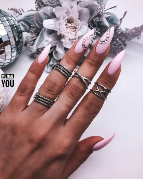 Элегантно и просто. Подойдет для офисных работников, студентов или учеников. Этот цвет является уникальным, поэтому он сочетается с разными типами одежды. Новогодний нежный маникюр будет легкий и красивый, смотреться на любой форме ногтя. Этот цвет будет выглядеть еще более женственно и нежно с небольшим количеством страз или браслетом, кольцом на руке.