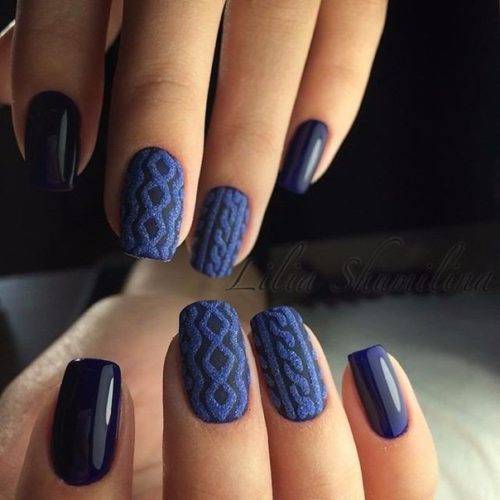 Особенно эффектно объемная вязка смотрится на основе матового лака.