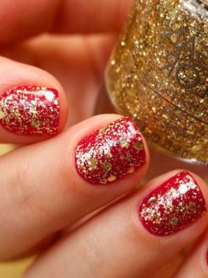 В первую очередь стоит обратить внимание на вариант красного новогоднего маникюра с разнообразными блестками. Такой стиль, определенно, будет выглядеть довольно ярко и броско