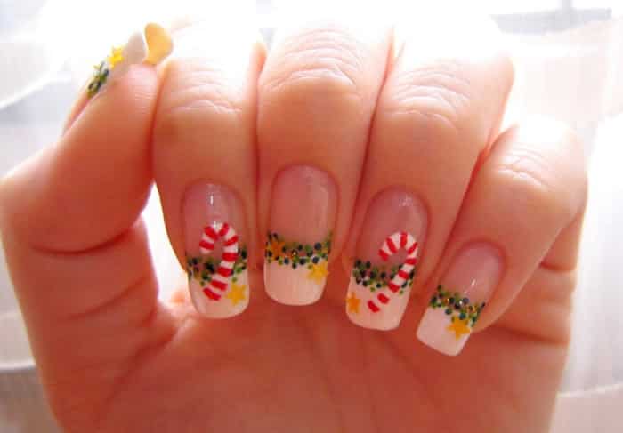 Сочетание красного и зеленого цвета в новогоднем дизайне – классическое решение. Красный сам по себе является базовым цветом для повседневного маникюра, но при сочетании с насыщенным зеленым цветом возникает ощущение праздника. Можно дополнить такой дизайн элементами серебристого и белого цвета.