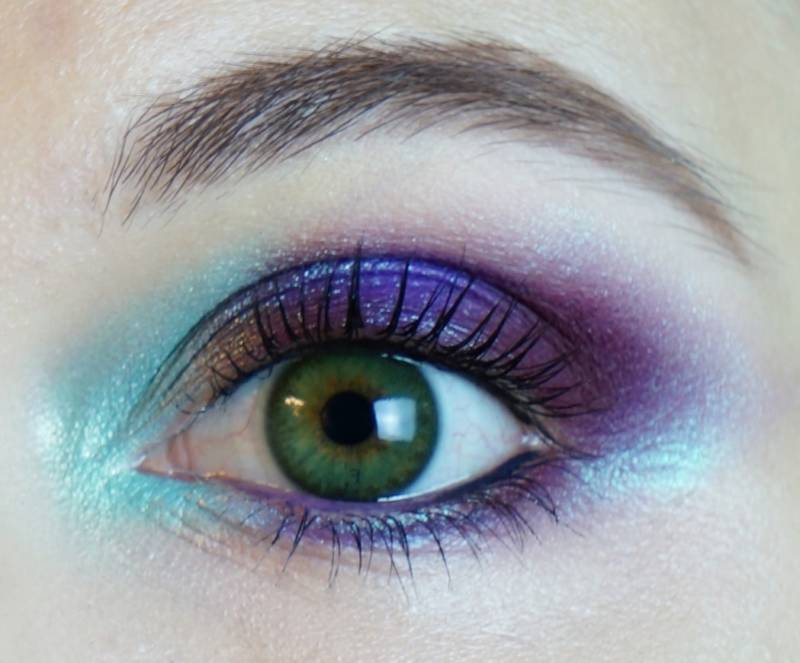 Дополняйте фиолетовый сочетанием других цветов, чтобы смягчить контраст с зеленой радужкой.
