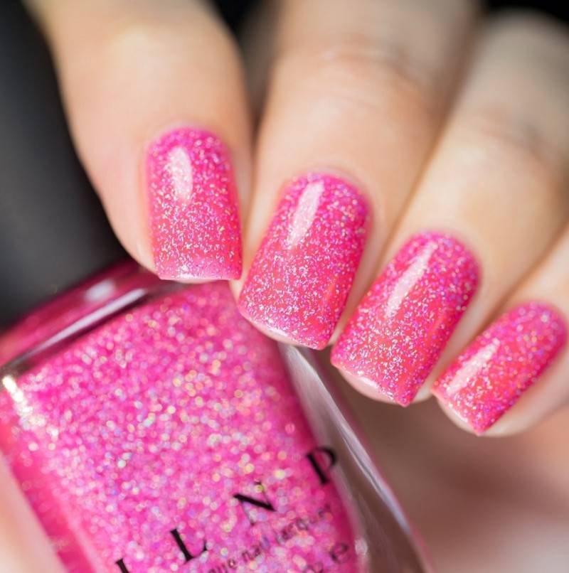 Для градиента, в данном случае, используются голографические розовые конфетти, серебристые блестки и голографическая пыль. Смоделированные ногти необходимо хорошо обезжирить, а покрытие гель-лаком не обязательно.