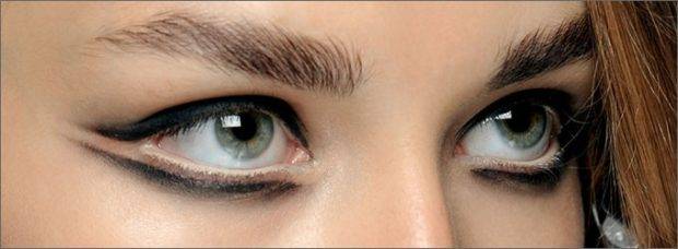 Особую выразительность глазам придаст черная подводка. Она наносится мелкими штрихами. Лучше пользоваться специальной кистью. Возможны темно-коричневый, серый и синий варианты. Часто девушкам рисуют стрелки.