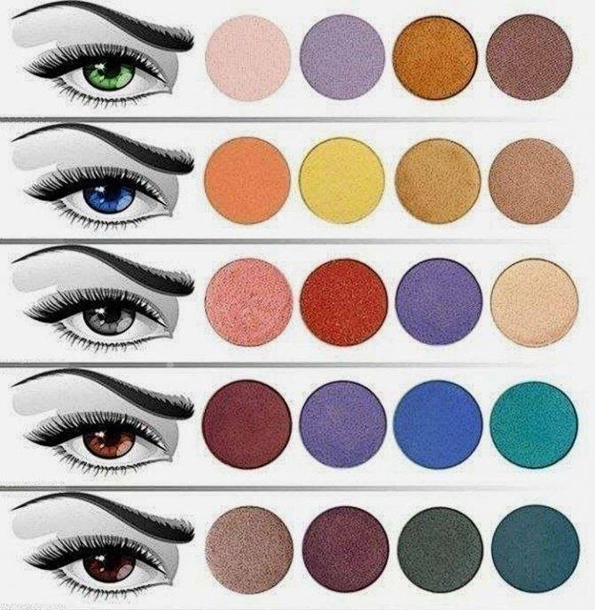 Палитру теней выбираем соответственно цветовому типу, в зависимости от цвета глаз и волос, а также оттенка кожи.