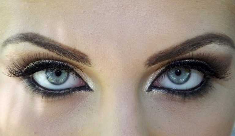 Свежести взгляду добавляют нежные светлые тона. Темные корректируют, придают глазу выразительности. Добавить выразительности может темный карандаш. Завершающий момент нанесение туши. Несколько слоев подходит для вечернего образа. Перед нанесением туши ресницы покрываются пудрой, тогда эффект от нее более сильный.