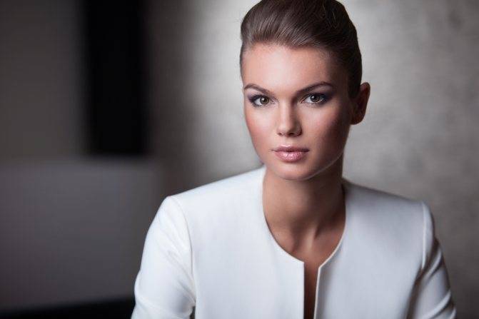 На фотографии пример того, как должен выглядеть деловой макияж: