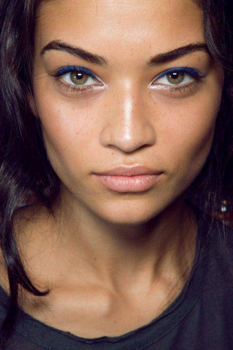- Использовать яркие элементы – если дневной макияж создаётся не для офиса с особым дресс-кодом, то можно подчеркнуть красоту глаз яркой подводкой, отлично подойдет синий цвет.