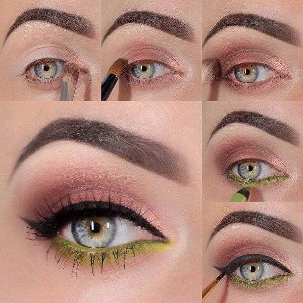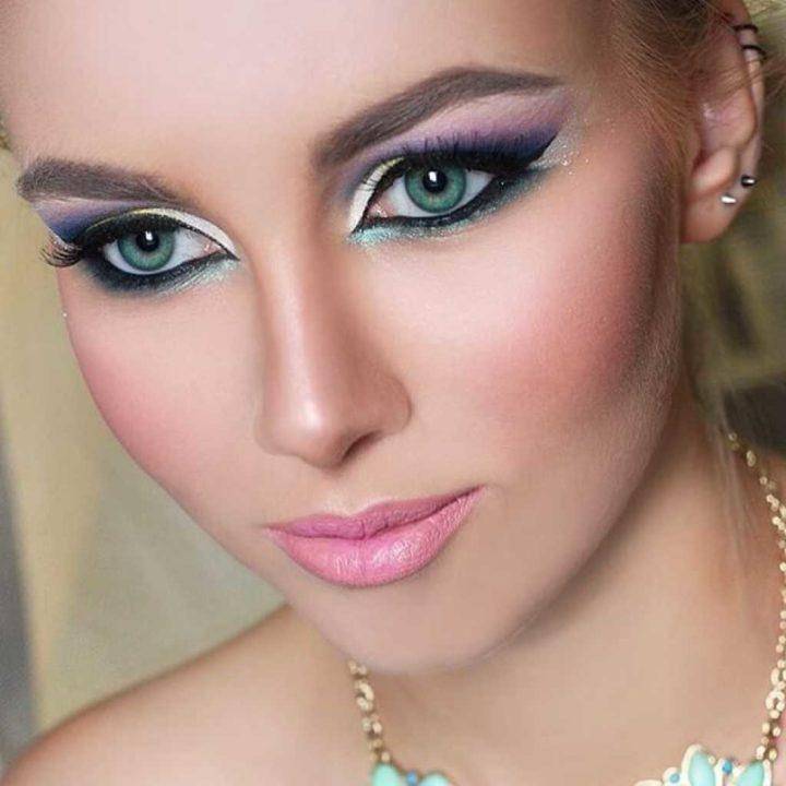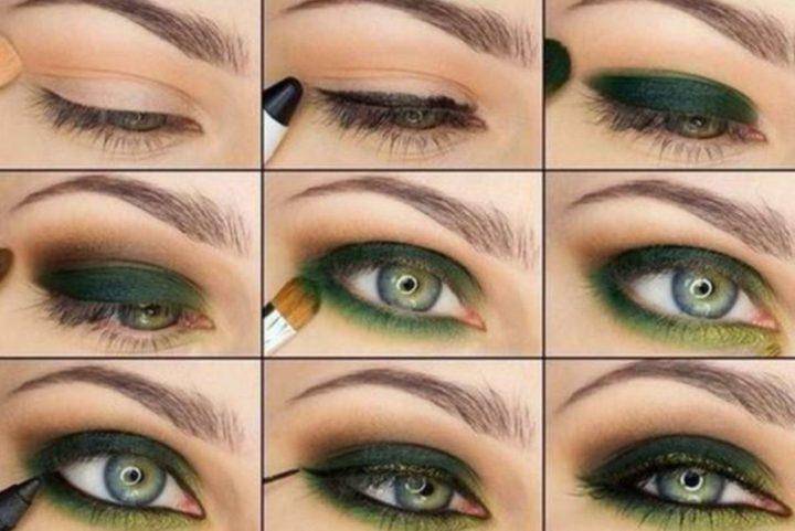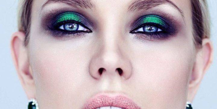 - лучше не использовать тени синего цвета, которые делают взгляд глаз с зеленым оттенком более мутным.
