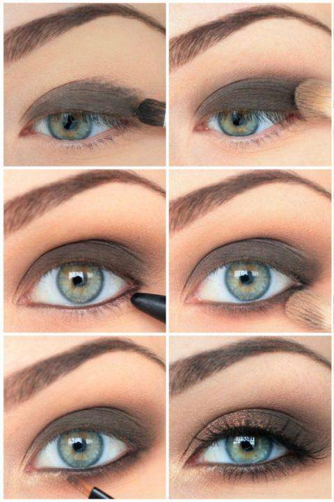 Вечерний макияж требует ярких цветовых акцентов. Так как серый цвет глаз сам по себе выглядит достаточно эффектно на фоне волос любого цвета, лучше подчеркнуть именно его, а для губ выбрать нюдовый или нежно-розовый оттенок. Следуйте нашей фотоинструкции для создания коричневой дымки. Благодаря теплому коричневому оттенку глаза будут казаться скорее голубыми, чем серыми.