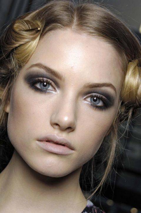 К серым глазам отлично подходит макияж в стиле «smoky eyes» Кстати, такой макияж отлично впишется в атмосферу корпоратива, что позволит вам не остаться без внимания. К такому макияжу глаз лучше всего подойдет матовая или пастельного тона помада.