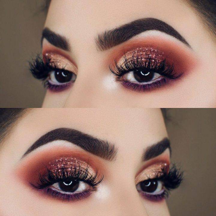 - Экспериментировать со стилями – темноглазым девушкам подойдут различные вариации арабского макияжа, смоки айс и т.д. В дневном варианте в них используется меньше техник, поэтому создавать такие образы гораздо легче.