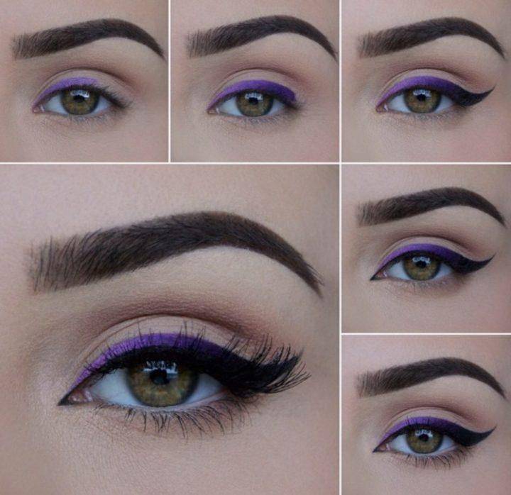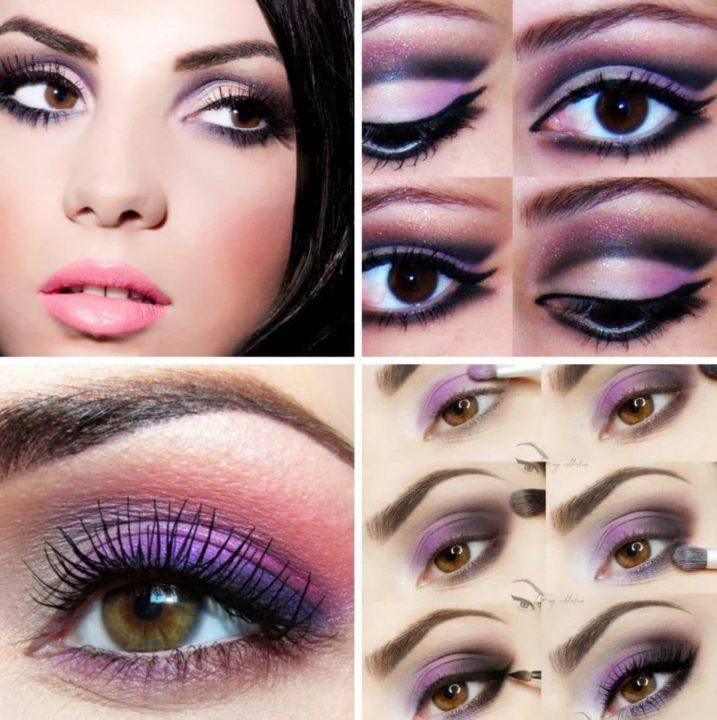 Карий цвет глаз считается самым распространённым цветом глаз, и существует масса различных видов и цветов теней, которые отлично сочетаются с таким оттенком радужки. Лучшим вариантом будет сделать яркие, черные стрелки, а также фиолетовые тени матовой структуры.