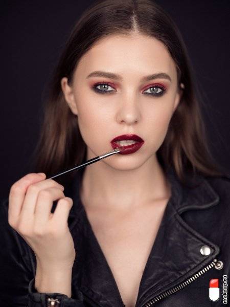 Палитра цветов для рокерского make up кажется безграничной. Вы можете использовать как спокойные оттенки, так и брутальные, яркие цвета. Для сохранения женственности и кокетства сделайте губы бледными. Используйте матовую персиковую, бежевую, нежно-розовую помаду. Для откровенного рокового образа подойдет алая помада, сливовых, вишневых оттенков, цвета бордо, бургунди, марсала.