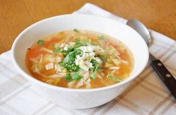 Диетический супчик готовится следующим образом. Положите в кастрюльку 3 цуккини, 2 помидора, 3 сельдерея, 1 среднюю морковку, 3 чесночных зубка, несколько веточек петрушки, орегано и залейте водой (4 стакана). После закипания проварите 30 минут, добавьте шинкованную китайскую капусту (пиалку), потомите на огне еще 2-3 минутки. В качестве приправы пользуйтесь черным молотым перцем. Блюдо готово. Кроме порции супа, в обед также разрешено скушать порцию салата из нежирного отварного куриного филе, китайской капусты, шпината, петрушки, авокадо, огурца, репчатого лука, моркови, миндаля и томата.