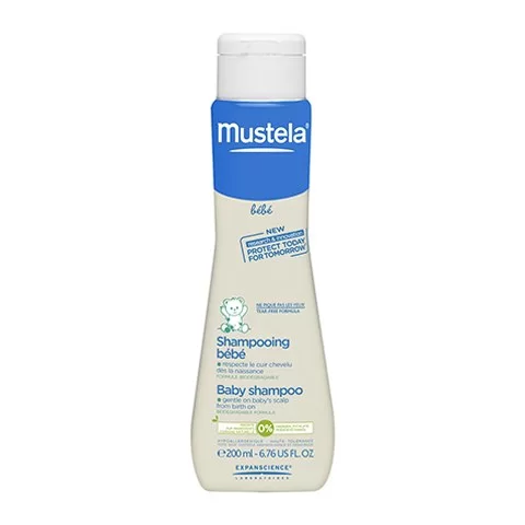 «Мустела» французской марки Mustela. В его составе мягкие ПАВ, экстракт ромашки, Avocado perseose (натуральный компонент, извлечённый из авокадо, защищает кожу младенцев). Достоинства: очищение, увлажнение и защита. Не щиплет глазки. Не вызывает аллергии. Недостатки: высокая стоимость.