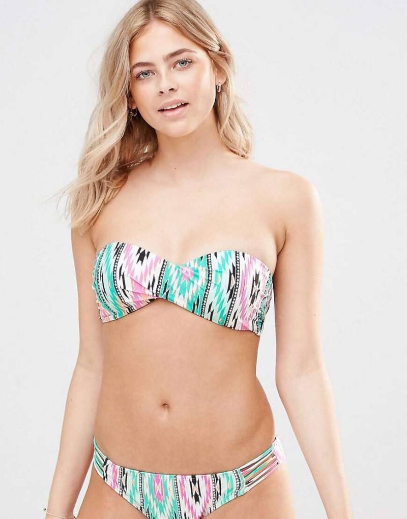 Данный вид купальника мы решили выделить отдельным пунктом, так как он является наиболее популярным среди представительниц женского пола с небольшим бюстом. Данная модель купальника отлично формирует линию груди, визуально придавая ей больший объем, и смещая акцент на открытые плечи без бретелей и живот. Особенно хорошо с этой функцией справляются купальники бандо с рюшами и валанами или с эффектом Push-up.