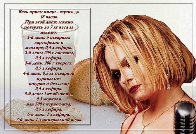 Наиболее популярная версия кефирной диеты на 10 дней была разработана доктором Сайковым и долгое время носила имя своего самого преданного «адепта», а именно — была известна в народе как «диета Ларисы Долиной».